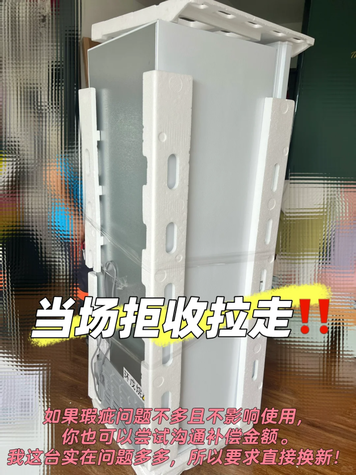 所以新冰箱到家之后,不管送货的师傅催的着急都不要立马通电,一定要按照使用说明,静置一段时间,让机油有足够的时间回流。